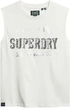 Superdry Women's Eng Anliegendes Archive Tanktop mit Verzierung Creme - Größe: 34