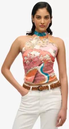 Superdry Damen Jacquard-oberteil mit Nackenträger Pink - Größe: 40