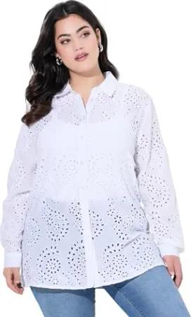 Damen große Größen Übergrößen Plus Size Bluse, A-Linie, Lochstickerei, Langarm schneeweiß 48 838537200-48
