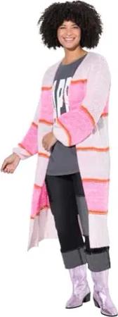 Damen große Größen Übergrößen Plus Size Strickjacke, lang, Neonstreifen, offene Form Offwhite 54+ 839206200-54+
