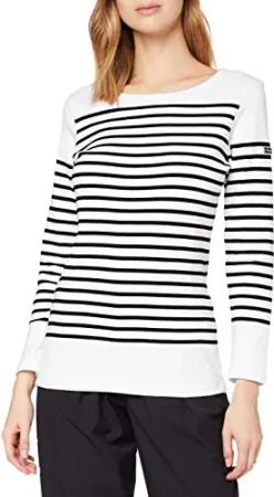 Armor Lux Damen Marinière "Amiral" Femme Langarmshirt, Weiß (Dw5 Blanc/Etoile Dw5), 34 EU