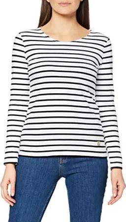 Armor Lux Damen Marinière 'Plozévet' Femme Langarmshirt, Mehrfarbig (Bi9 Blanc/Rich Navy Bi9), 44 EU