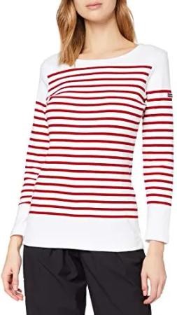 Armor Lux Damen Mariniere Cap Coz Langarmshirt, Weiß (Blanc/Braise 320), Gr. 40 (Herstellergröße: 3)