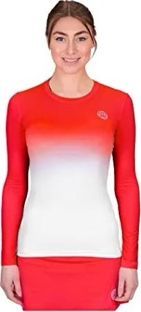 Damen Crew Gradiant Longsleeve - red, White, Größe:XS