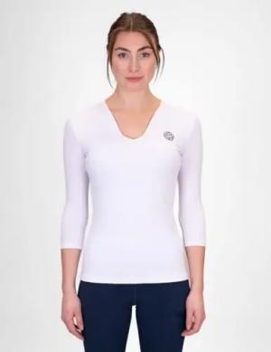 Damen Crew V-Neck Longsleeve - White, Größe:M