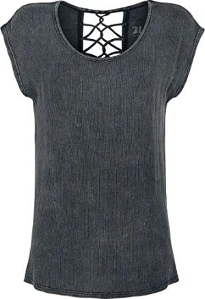 Damen graues T-Shirt mit Zierbändern am Rücken S