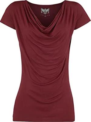 Damen rotes Basic T-Shirt mit Wasserfall-Auschnitt L