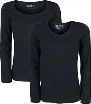 Damen Schwarze Basic Langarmshirts im Doppelpack XXL