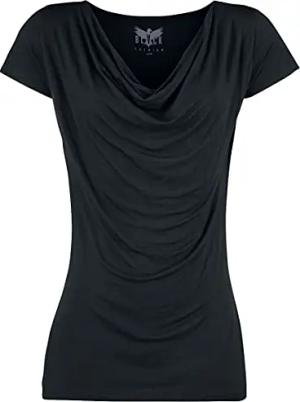 Damen schwarzes Basic T-Shirt mit Wasserfall-Auschnitt M