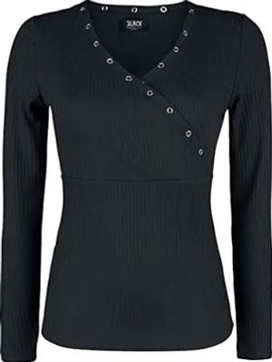 Damen schwarzes Langarmshirt mit Ösen S