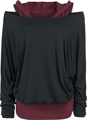 RED by EMP Fast and Loose Langarmshirt Damen - Schwarzes Longshirt mit U-Boot-Ausschnitt & Weitem Schnitt - Lässiges Damen-T-Shirt aus Viskose, exklusiv bei EMP