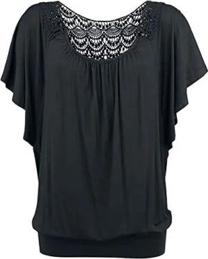 Damen schwarzes lockeres T-Shirt mit Spitze 5XL