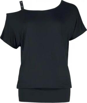 Damen schwarzes T-Shirt mit asymmetrischem Halsausschnitt und Trägerband mit Lochnieten M
