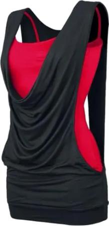 Damen schwarz-rote Basic Tops im Doppelpack S