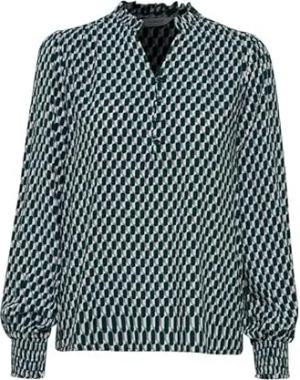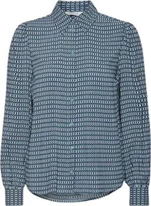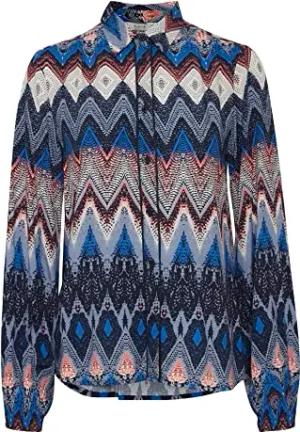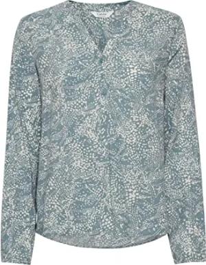 BYMMJOELLA Damen Langarmshirt Langarmbluse Bluse mit V-Auschnitt mit Knopfleiste Allover-Print Regular Fit aus 100% Viskose LENZING(TM) ECOVERO(TM), Größe:36, Farbe:Smoke Blue Mix (201131)