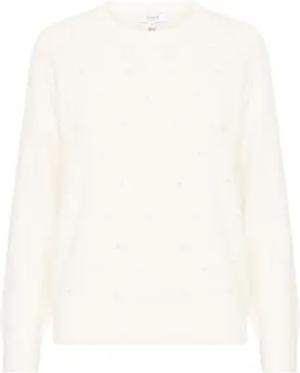 BYBxokama Damen Strickpullover Feinstrick Pullover mit Perlen RIPP-Saum Regular fit, Größe:XL, Farbe:Off White Melange (1148001)