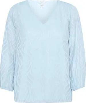 BYFRIKKE Damen Bluse Shirt mit 3/4-Ärmel V-Ausschnitt Raffungen Loose fit, Größe:46, Farbe:Kentucky Blue (153915)