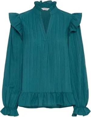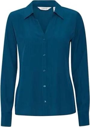 BYSilva Damen Bluse Shirtbluse Shirt Langarm mit Rüsschen Rundhals Regular fit, Größe:M, Farbe:Riviera (174027)