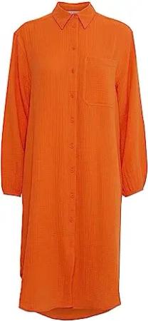 BYIBERLIN Long Shirt Damen Freizeitkleid Kleid mit Knopfleiste und Kragen, Größe:36, Farbe:Orangeade (171461)