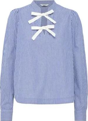 BYIbis Damen Bluse Blusenshirt Tunika mit V-Ausschnitt Schleifen 100% Baumwolle Loose fit, Größe:40, Farbe:Deep Ultramarine Mix (205117)