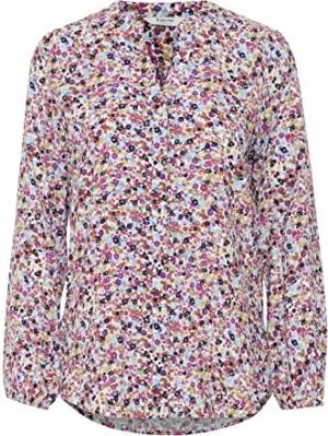 BYFenja Damen Bluse Shirtbluse Shirt Langarm mit Rüsschen Knopfleiste 1-Knopf-Manschette Regular fit, Größe:40, Farbe:Angel Falls (154105)