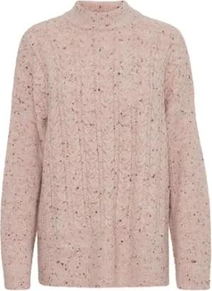 BYNATA Damen Strickpullover Grobstrick Pullover Stehkragen Loose fit, Größe:S, Farbe:Pale Mauve Melange (1516071)