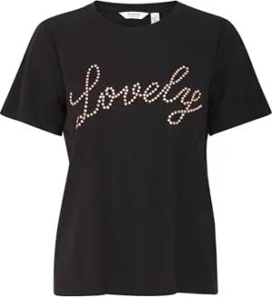 BYUlovely Damen T-Shirt Kurzarm Shirt mit Print Rundhals elastisch Regular fit, Größe:S, Farbe:Black (200451)
