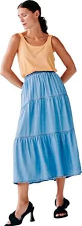 BYMMJOELLA Long Tunic Dress Damen Freizeitkleid Kleid mit V-Ausschnitt und Schnürung, Größe:38, Farbe:Little Boy Blue Mix (201897)