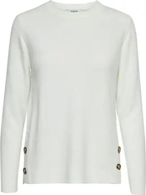 BYRAMSI Pullover Damen Longsleeve Shirt Rundhals 100% Baumwolle Relaxed fit, Größe:L, Farbe:Off White Mix (200450)
