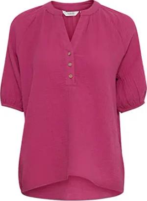 BYJOSA Damen Kurze Bluse mit V-Ausschnitt und Stehkragen, Größe:40, Farbe:Red Violet Mix (201724)