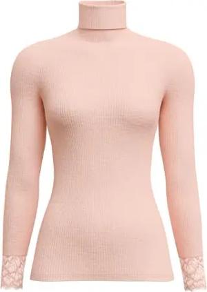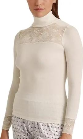 Richesse Lace Top Damen, aus Schurwolle und Seide, mit Spitze am Ausschnitt, Feinripp im Rundstrick ohne störenden Seitennähte, temperaturausgleichend