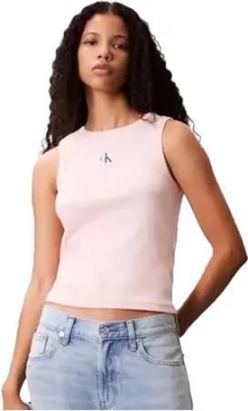 Damen Tank Top Woven Label Rib Slim Fit, Rosa (Silver Peony), XXS