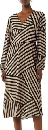 Comma Geripptes Slim-Fit-Kleid mit V-Ausschnitt