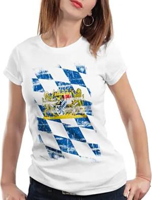 Bayern Vintage Flagge Damen T-Shirt München Oktoberfest Fussball FC, Farbe:Weiß, Größe:XS
