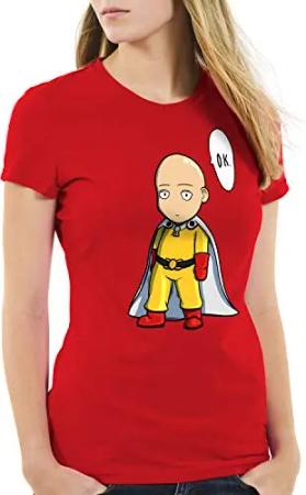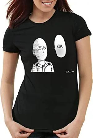 Saitama OK Manga Damen T-Shirt One Punch OPM, Farbe:Schwarz, Größe:XL