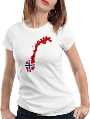 Flagge Norwegen Damen T-Shirt Fußball Sport Norway WM EM Fahne, Farbe:Weiß, Größe:S
