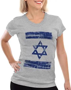 Israel Vintage Flagge Damen T-Shirt David Stern, Farbe:Grau meliert, Größe:XS