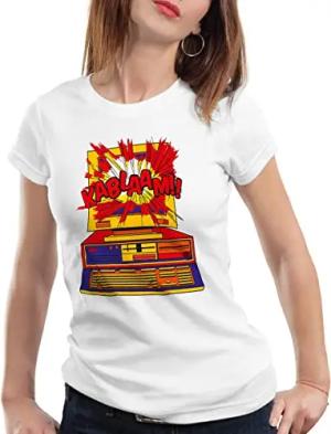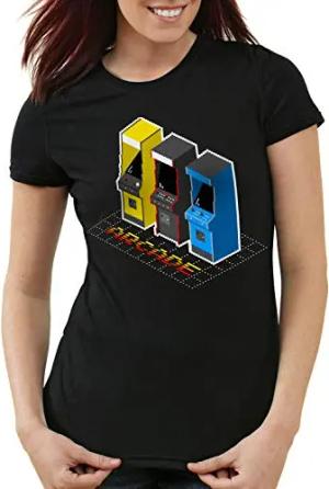 Retro Arcade Damen T-Shirt Classic Gamer spielhalle automat, Größe:S
