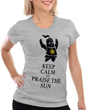 Keep Calm an Praise The Sun Damen T-Shirt Sunbro Solaire, Farbe:Grau meliert, Größe:L