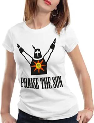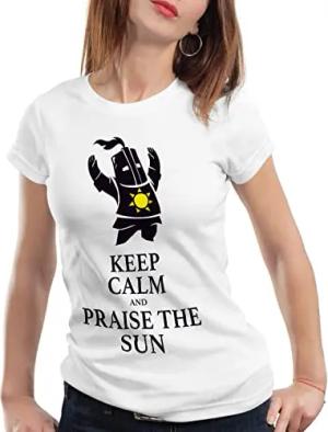 Keep Calm an Praise The Sun Damen T-Shirt Sunbro Solaire, Farbe:Weiß, Größe:XS