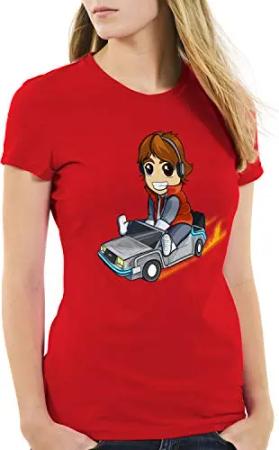 Marty McFly Damen T-Shirt Chibi zeitreise, Farbe:Rot, Größe:L