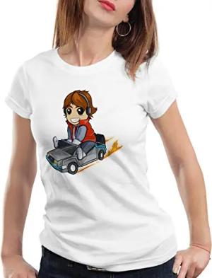 Marty McFly Damen T-Shirt Chibi zeitreise, Farbe:Weiß, Größe:L