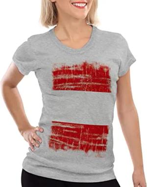 Österreich Vintage Flagge Damen T-Shirt Austria EM WM, Farbe:Grau meliert, Größe:L