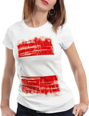 Polen Vintage Flagge Damen T-Shirt Poland EM WM Olympia, Farbe:Weiß, Größe:L