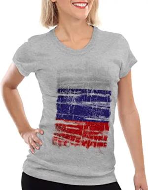 Russland Vintage Flagge Damen T-Shirt Russia EM WM Olympia, Farbe:Grau meliert, Größe:S