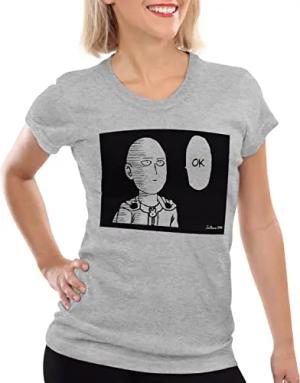 Saitama OK Manga Damen T-Shirt One Punch OPM, Farbe:Grau meliert, Größe:XS
