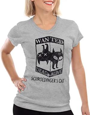 Schroedingers Katze Wanted Damen T-Shirt, Farbe:Grau meliert, Größe:XS