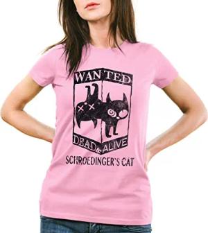 Schroedingers Katze Wanted Damen T-Shirt, Farbe:Pink, Größe:S