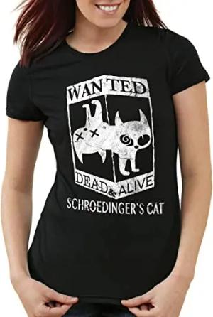 Schroedingers Katze Wanted Damen T-Shirt, Farbe:Schwarz, Größe:S