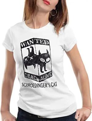 Schroedingers Katze Wanted Damen T-Shirt, Farbe:Weiß, Größe:S